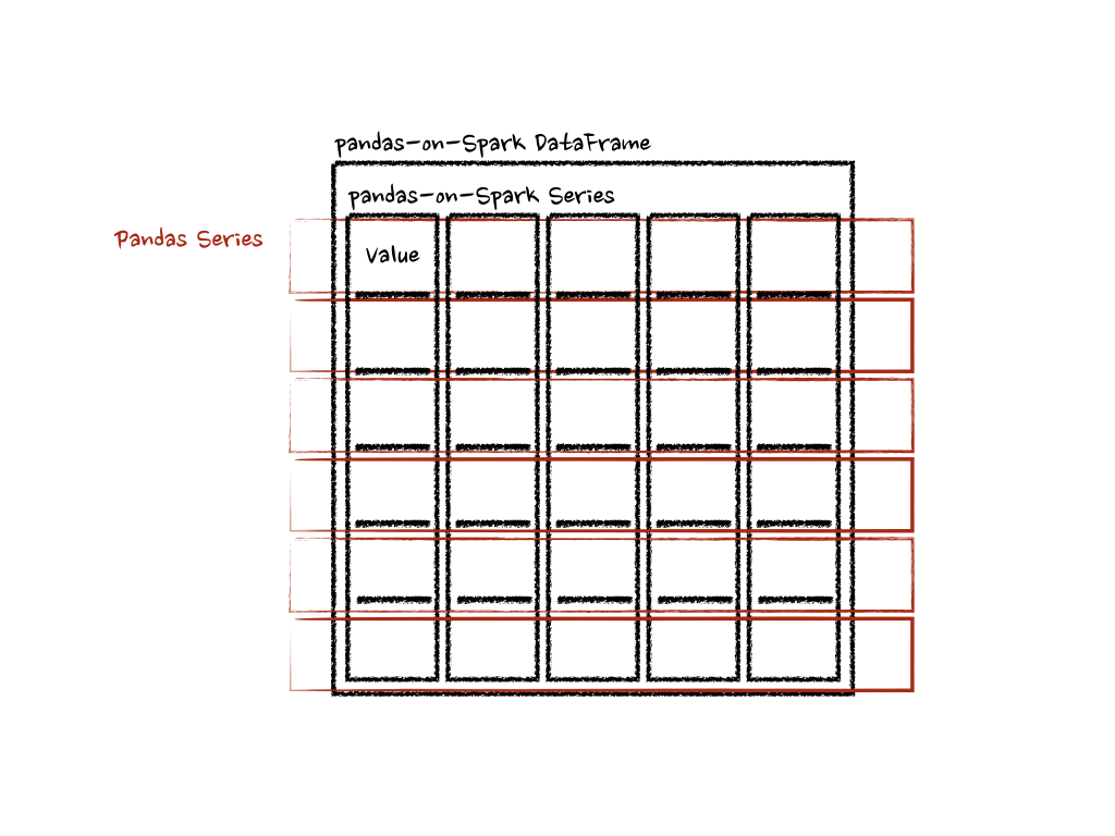 In DataFrame.pandas_on_spark.transform_batch(), DataFrame.pandas_on_spark.apply_batch(), Series.pandas_on_spark.transform_batch(), etc., the batch postfix means each chunk in pandas-on-Spark DataFrame or Series. The APIs slice the pandas-on-Spark DataFrame or Series, and then applies the given function with pandas DataFrame or Series as input and output. See the examples below: